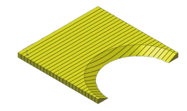 通过在泡沫上下两面分别错开切割槽,切割深度为芯材厚度的50%,不仅保留深槽板的导流优点,而且适用于更复杂的曲面工艺。