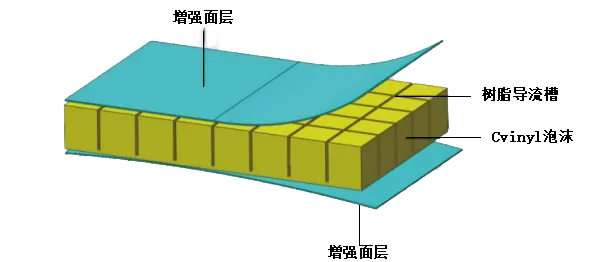 通过在泡沫表面进行纵横开槽处理,一面贴玻璃纤维网格布防止其掉块,保证树脂均匀与有效的贯通,并应用于各种曲面和非曲面工艺产品。